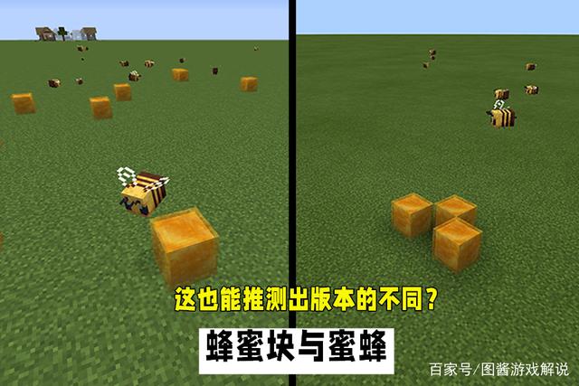 说起来你可能不信,蜜蜂和蜂蜜块也隐藏着小细节,在《我的世界》java版本中,蜜蜂会偶尔停留在蜂蜜块上,就像是在给花朵授粉一般,而基岩版的蜜蜂则无此特性,它们对蜂蜜块没有任何兴趣。