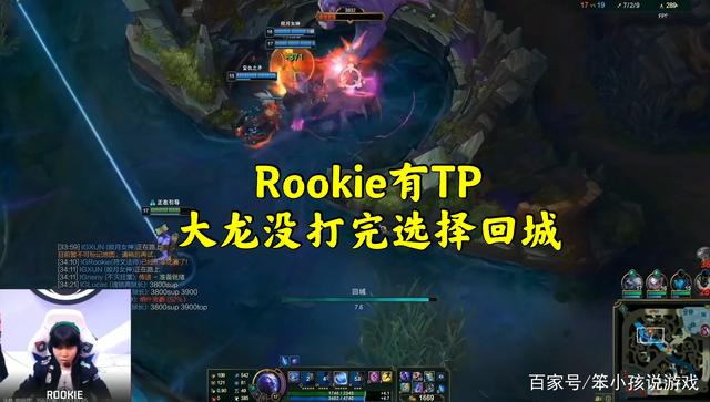 另外,选择回家的Rookie没有使用传送,而是选择按B键回城,此时大龙还没有打完,回城一半时才有大龙Buff加成,这样回到家也无济于事。如果Rookie直接使用TP传送防御塔或者小兵,或许真的有挽救的机会。