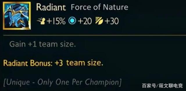 光明泰坦:携带者受到攻击或造成暴击后获得6点攻击力和法强,最高可叠25层,叠满后获得50点护甲和魔抗;