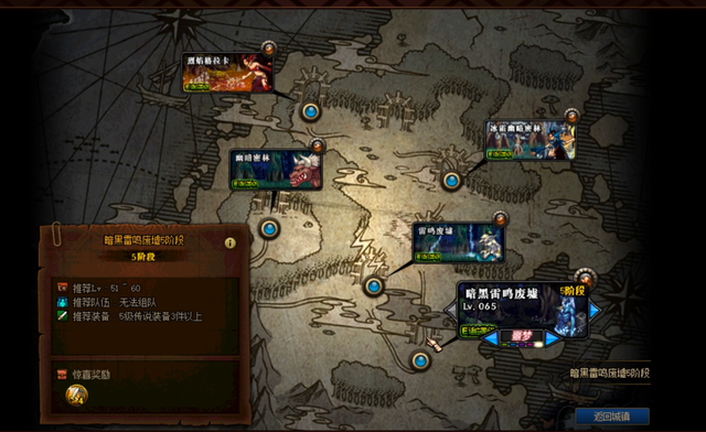 特殊城镇的地图,每一区5张图,五个等级,这其中包括了不少阿拉德的副本。65级的冰霜僵尸你见过吗?