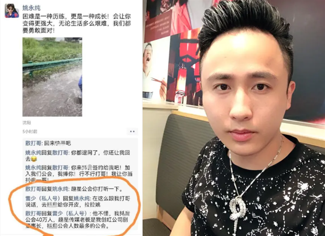 近日,原ks主播姚永纯(后跳槽外站)在个人社交平台发了一条动态,散打哥与其在评论区互相调侃。而在此期间,散打哥首次爆出“猛料”,声称:自己的公司已经开始布局外站(dy),如今已经创建了该平台最大的直播公会,旗下的签约主播高达40万人!