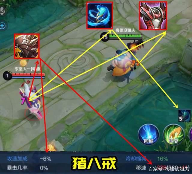 说的可能比较绕,不过看下图就应该明了了:装备了不祥征兆的东皇,每次攻击装备了反甲与日暮之流的猪八戒,均会为其叠加一层日暮之流被动以及不祥征兆被动。