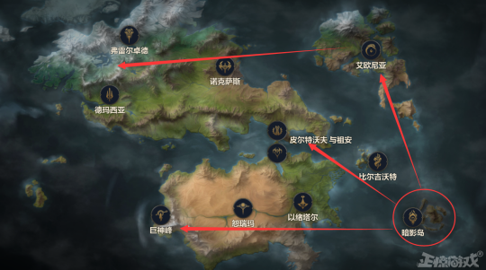 结合英雄联盟宇宙公布的大地图来看,我们不难发现佛耶戈初次入侵的地区为艾欧尼亚、比尔杰沃特、以绪塔尔,而他必须得穿过诺克萨斯、费雷尔卓德,才能达到德玛西亚首都。