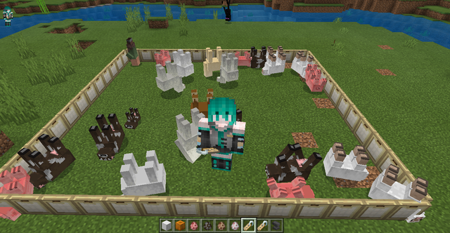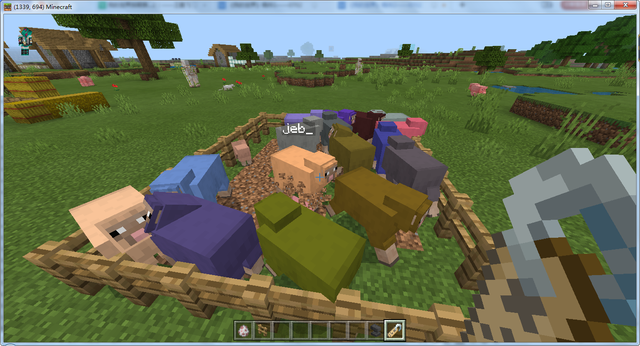 和上面的兔兔类似,如果你给一只羊命名为“jeb_”,那么这只羊会一直变换颜色,不过如果你拿剪刀去剪羊毛,也只会获得白色羊毛。