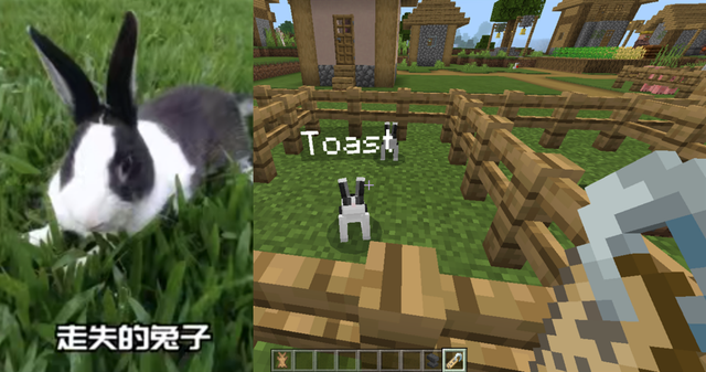 在游戏中,如果你给一只兔子使用命名牌命名为Toast,那么,这只兔子就会变成稀有的黑白双色兔。