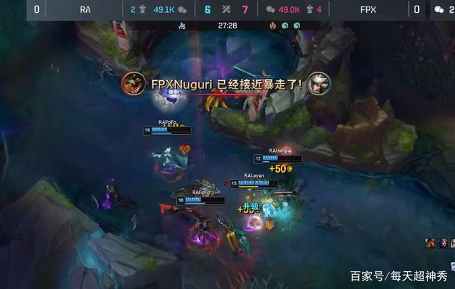 与FPX不同,RA节奏点在中野,且强势期靠后,FOFO妖姬+小乐言盲僧需要针对下半区发动进攻,帮助iBoy厄斐琉斯接管中期团战。