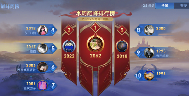 所以理所应当就会排在别人好友里的第一名,甚至是全区都排在前一百名,而这样的上分频率,基本上玩什么英雄也都是金牌打底的,这也许就是大家经常说的“肝帝”吧,只是平时所说的“肝帝”,是打了一个赛季勉强达到最强王者段位或者荣耀王者段位,但是人家的“肝帝”却是在赛季初就打进了全区前100,或者说全国排名,这就是本身有实力和没有实力的差别,比别人有天赋,还比别人更加努力,这样的玩家确实很让人佩服。