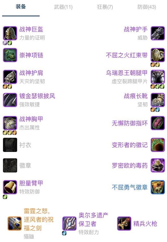 首先我觉得现阶段的防战配装和天赋研究蛮有意思的,用有限的资源,最大化满足团队的需求,一万个人有一万个想法和配装,就比如我昨天看到一个防战穿锻造胸甲来提升仇恨,确实让人耳目一新。