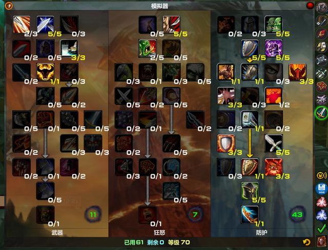 狂暴天赋,很多新人不明白挫志为什么只点2点,理由是TBC所有BOSS的攻击强度是固定340,两点挫志足矣。