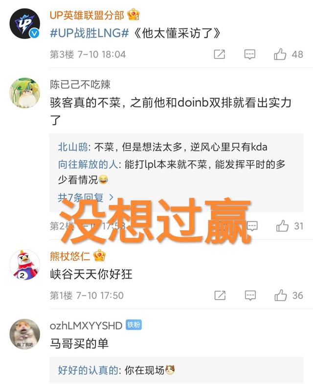 前言:S11赛季的比赛正在如火如荼地进行中,相信绝大多数的玩家都关注了,最近一段时间的夏季赛,Lpl赛区的比赛已经过半了。经历了版本的变动之后,各大战队都在找寻最新的阵容。而一些队伍在前一段时间的状态和成绩非常不错,但现在却出现了问题,最突出的表现应该有fp x战队和lng战队,这两个队伍在之前的版本中,主要依靠的就是战士型中单,但是常规法师的回归,让他们的成绩开始下滑,lng战队拿到了七连胜之后,已经来到了一个两连败,而且是被up战队击败的,真就开高走低了。赛后采访环节还被对方的打野选手虾仁猪心,直言在比赛开始之前,根本就没想过能赢,毕竟训练赛就没怎么赢过。