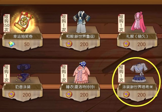 可以参考本次的转盘,里面就有塔西米的泳装,看看需要的额度是多少?