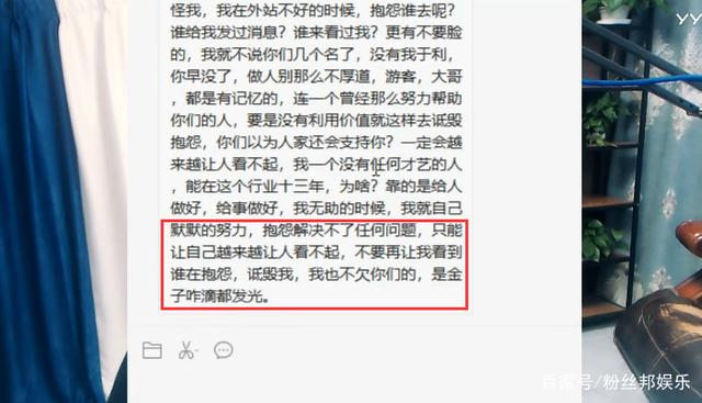舞帝利哥在群内发表的长文表示,舞帝的主播在没认识自己之前有啥,对于平台的“变故”不是他能左右的。