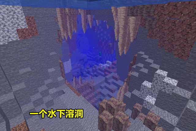 还有一个见过的洞穴生物群系就是溶洞了。溶洞是由滴水石块和滴水石锥组成的洞穴,滴水石块和滴水石锥由组成了溶洞中的钟乳石、石笋和石柱等结构,也是一个看起来很棒的洞穴。而且迷恋非常巧合的遇到了一个水下的溶洞,里面还有一只发光鱿鱼呢。