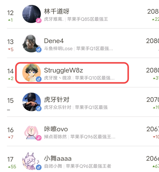 不过常在巅峰赛排行榜露面的主播也大有人在,小单车、树叶、韩涵、陌辰、微凉、南瓜等等,但强如他们也不敢保证不掉队,这不韩涵就从第三掉到第八,微凉从前三掉到14名,口袋更是直接掉到了41名…期间虽不断有名气较小的主播或路人大神涌现,但大多都为匆匆过客,玩家们重点关注的还是那些有名气、有话题度的主播。