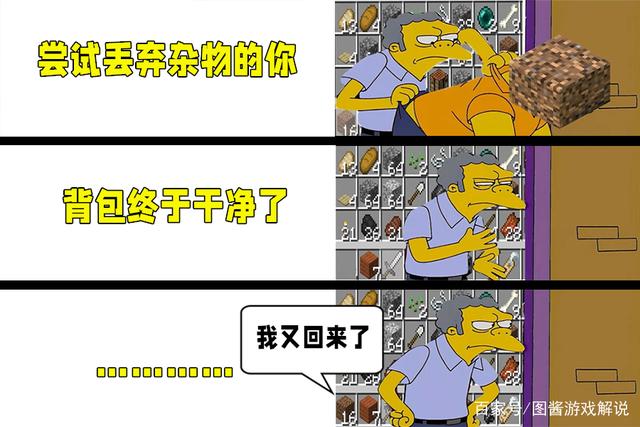 清理背包是一件极其痛苦的事情,那些需要丢弃的道具就如同具有满级忠诚附魔一般,丢弃之后总会在你不注意的时候又偷偷“跑”回你的背包。强烈建议mojang加入自动拾取冷却设定,被玩家主动丢弃的材料在一段时间内无法被自动拾取,如若丢错道具,可以点击道具手动拾取,这样能大大减少清理背包的麻烦程度。