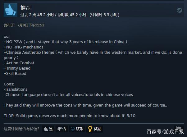 从评论区可以看到,外国玩家钱掏得心甘情愿。对于《古剑奇谭OL》海外版,他们几乎清一色的好评,甚至他们还认为这就是MMORPG的新标杆,唯一瑕疵只在于还有部分中文没替换干净。