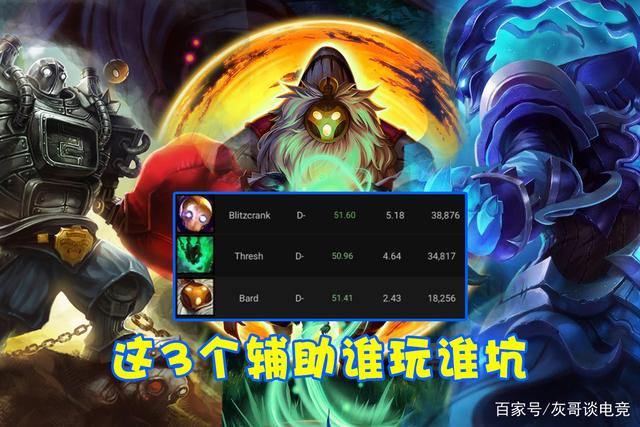 首先是最弱的“暗黑五天王”,根据数据显示,目前官方评级为“D-”的英雄共有5个,其中有3个来自辅助位,分别是机器人、锤石和巴德,它们强度低的原因很简单,首先自身没有carry能力,论功能性不如其他软辅、论开团能力与坦度不如日女、泰坦稳定。其次在终极魔典中大部分玩家都会选择战士或刺客,搭配大虫子、阿木木、铁男这些强力大招反打能力特别强,机器人和锤石就算钩到人也不一定打得过,除非终极魔典能和无限火力一样给一个加攻速与伤害的增益效果,不然这3个辅助还是别碰为好。