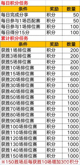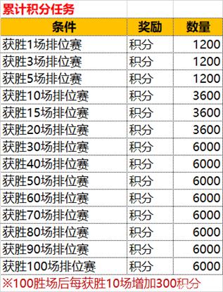 让我们回到这个夏日通行证的等级,其设置的标准是300积分为一级,每日通过比赛任务最多可以获得300积分,而通行证的持续时间是20天,则通过每日的比赛任务我们最多可以获得6000积分,理论上便是20级......另外通行证还可以通过我们在排位赛中的胜利场数获得额外的积分奖励,明细如下: