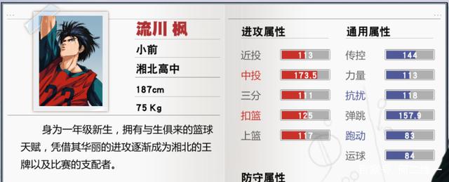 通过大约2天的实战测试,维一觉得扩层流川枫是一位对操作熟练度要求很高的球员,部分看似有些废柴的技能(如【拜佛骑马射箭】、【戏耍背扣】等技能),其实每场还是可以触发小几次的,主要难点是当触发这些前置条件的时候我们很难能反应过来,因此这里的熟练度便是指对这些冷僻技能反应熟练度;其次扩层流川枫对位置的感觉要求也很高,例如【极限拉杆上篮】、【转身隔扣】等技能的使用范围都有一定的限制,所以熟练的掌握流川枫在不同段数突破后的位置也是用好这些技能的关键;最后便是对抢断的熟练使用,例如流川枫的撞停抢断的确很强,但前提你得有很好的防守位置感来撞停或将对手状踉跄才行,这也是对其使用熟练度的一个要求,因此想要玩好扩层流川枫,其实对我们的基本功要求还是非常高的,大家需谨记。