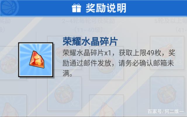 在所有可得的奖励中,比较有价值的是这个【荣耀水晶】碎片和白毛战斗表情(表情是限时的!!!),喜欢的水友可以特别关注下。