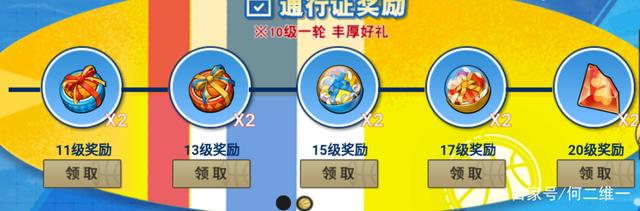 这个通行证每日完成各类任务可得积分,累积积分可以获得以上这些奖励,而上图中的这些奖励是第一轮的演示(每10级为一轮),到了2-4轮(也就是11-40级)的奖励则会变成下图中的这样,而最后从第5轮开始则会将这些奖励的倍数都变成3倍。