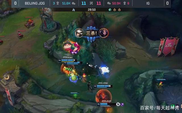 踏足召唤师峡谷,IG核心上单Theshy依靠个人能力在对线期取得巨额经济领先,Wink吉格斯同样抓住机会,在中路拆塔的过程中,配合队友秒杀Lvmao锤石,撤退不及时的Kanavi盲僧同样倒下,IG顺利击杀JDG两位队员。
