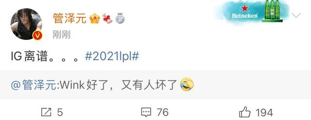 LPL解说纷纷发文感叹:可以看到IG粉丝对IG的表现已经几乎绝望,Theshy也被质疑,在赛后LPL解说们纷纷发文直言不讳,先是解说管泽元发文表示Wink好了,又有人坏了,IG就感觉离谱;而解说雨童则是四字评价IG:机会渺茫;