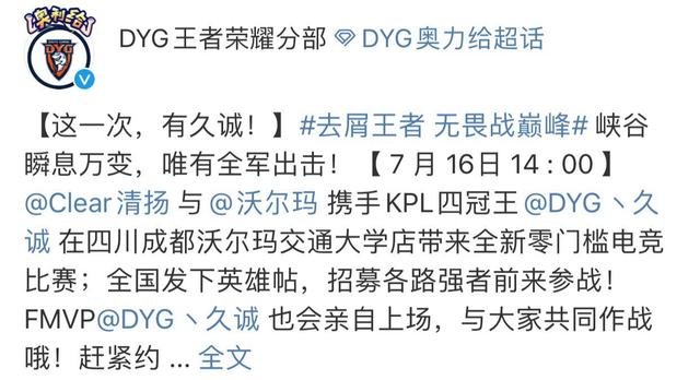 DYG官博之所以说:“这一次,有久诚”,其实就是想利用他的人气,帮助自己这波商业活动能够圆满完成,却没想到评论区会因此“炸锅”。毕竟DYG一直都没让久诚上场,现在却又提醒大家他会上场参加活动,这波操作已经是人尽皆知,玩家才会直言:“别再继续消费久诚了,他已经不配给DYG做商业活动了”。