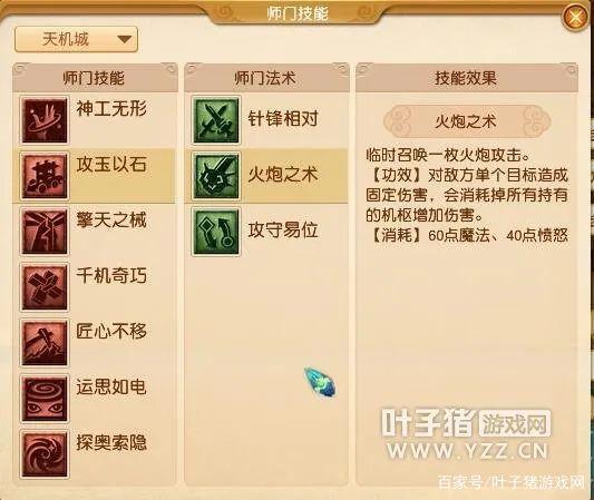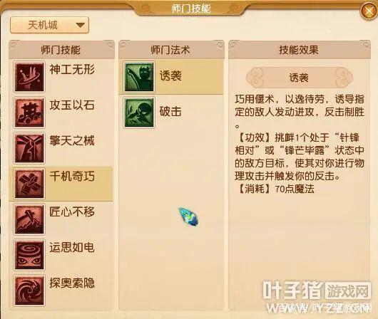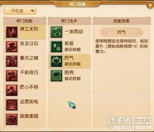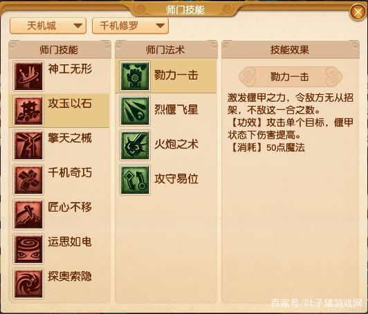 激发偃甲之力,令敌方无从招架,不敌这一合之数。【功效】攻击单个目标,偃甲状态下伤害提高。【消耗】50点魔法。在师门技能【运思如电】增加被动技能【通窍】,技能【勘破】。