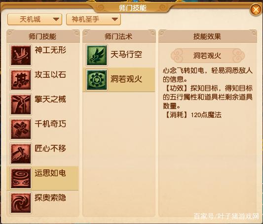 心念飞转如电,轻易洞悉敌人的信息。【功效】探知目标,得知目标的五行属性和道具栏剩余道具数量。【消耗】120点魔法。师门技能【匠心不移】增加技能【匠魂】、【匠心·归元】、【再造】。【匠魂】技能效果: