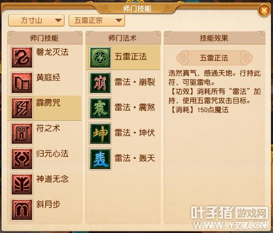 【五雷正宗】该流派的师门技能【符之术】新增被动师门法术【咒符】,其技能效果为回合开始时,会随机获得1~5枚符咒,雷法会消耗当前所有符咒来强化你的下一个五雷正法。师门技能【霹雳咒】新增5个在原【五雷咒】基础上升级的师门法术:【雷法·崩裂】