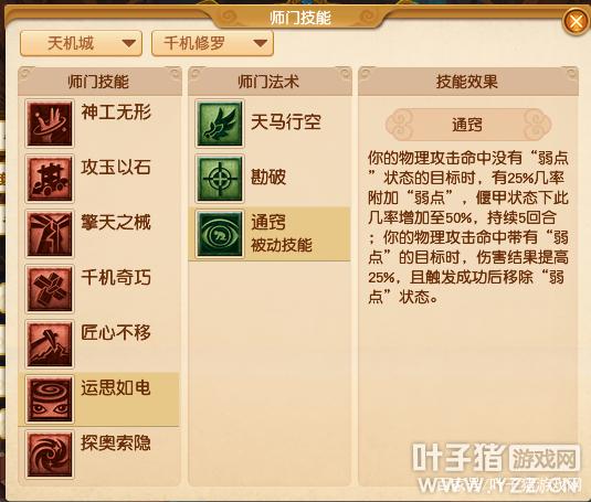 【千机修罗】千机修罗的师门技能,减少了【诱袭】、【锋芒毕露】技能。