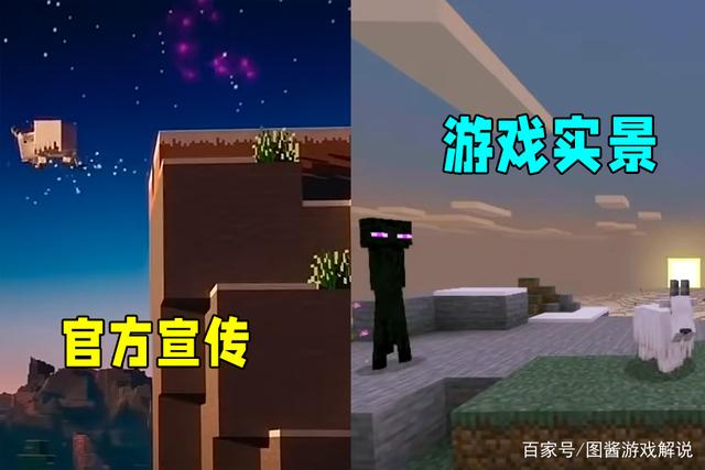 虽然官方是想用这个镜头来表达山羊可以减免部分摔落伤害,但并没有考虑到实际游戏中山羊不会攻击末影人,末影人也不会主动挑逗山羊的设定。