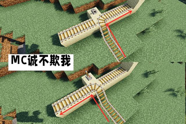 图酱一直以为仅凭一根拉杆就能切换轨道是无稽之谈,但是MC却给我上了一课!两个交错的铁轨确实可以通过拉杆来改变方向,没想到铁轨也属于能和红石信号产生互动的道具,这么多年MC真的是白玩了!