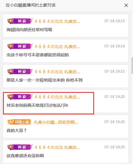 近日,YY神豪“北北”在华矩主播小白龙直播间爆料,说舞帝利哥有打电话跟他联系。