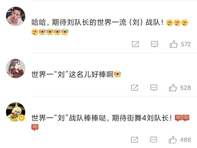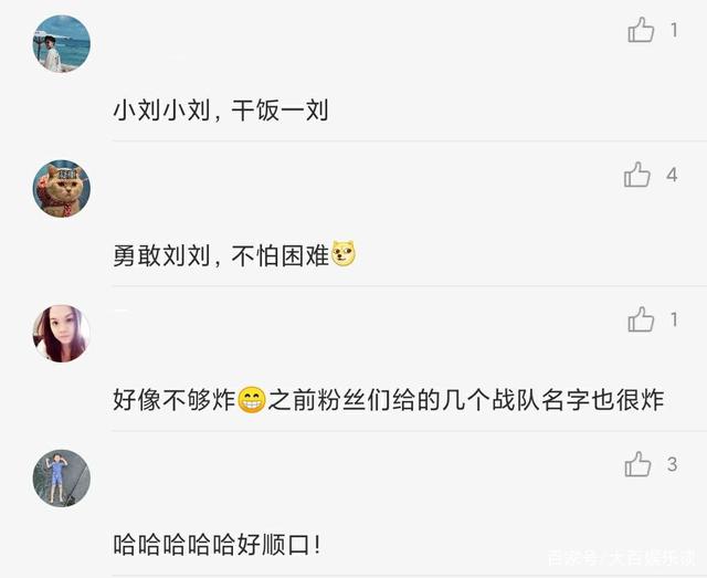 刘宪华选择“世界一刘”,有网友留言表示,这个战队名很棒,期待队长在节目中的表演,不过也有网友表示,这个战队名没有以前大家提供的霸气,但是这个战队名非常顺口。