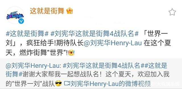 2.《大百娱乐谈_《这就是街舞4》刘宪华战队名世界一刘 四位队长取名有寓意》仅供读者参考,本网站未对该内容进行证实,对其原创性、真实性、完整性、及时性不作任何保证。