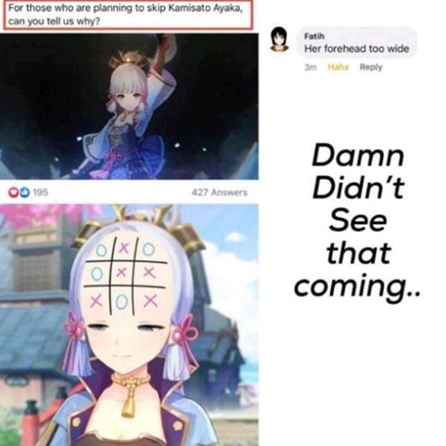 神里绫华遭外服玩家吐槽首先是神里绫华角色建模与游戏PV之间存在细微差距,其次是其本身的形象。《原神》外服玩家在关于一个“为什么不抽神里绫华”的问题当中,纷纷对这一角色进行了吐槽: