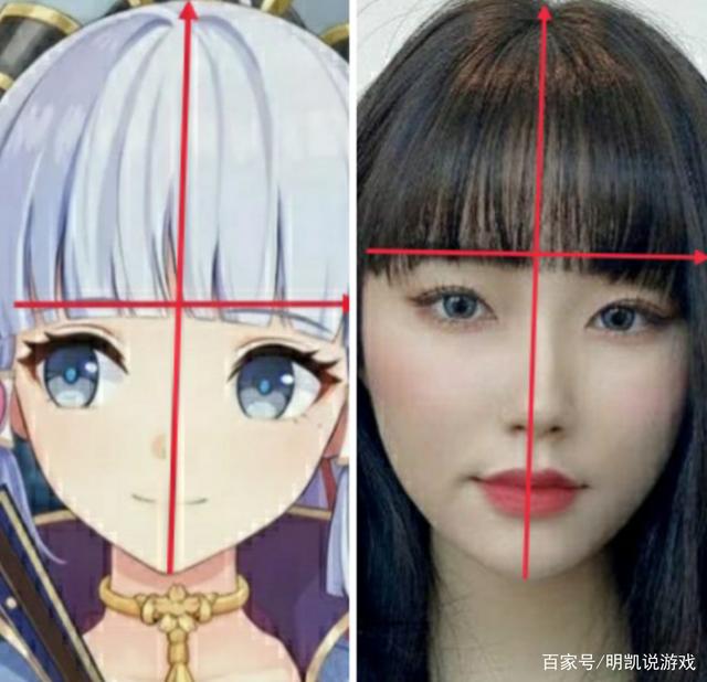 《原神》神里绫华与正常人对比即便在二次元角色当中,这样的比例也是比较少见的,额头比脸还要大(大家可以参照自己的面部比例)。