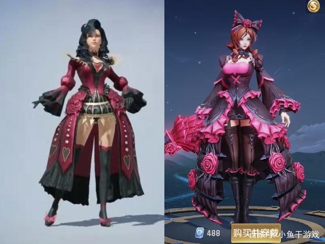 左边这款是和平精英新军需的“灸炎红王”套装,右边则是“王者”里面露娜的“哥特玫瑰”皮肤。这个相似度,难怪很多玩家觉得这么眼熟!