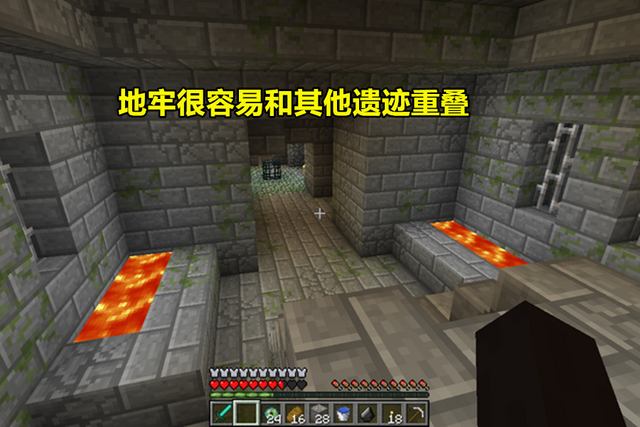 刷怪笼在地牢、废弃矿井、要塞、林地府邸、下界要塞、堡垒遗迹这五个遗迹结构中可以自然生成,但是地牢无疑是最为丰富的,因为它可以生成三种刷怪笼,而其他遗迹只有单一一种。