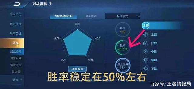当你进行排位时,系统不单根据段位进行匹配,通常还会参考你的隐藏分,两边的隐藏分总分尽量平衡。而对你自己而言,胜率则稳定在50%左右。