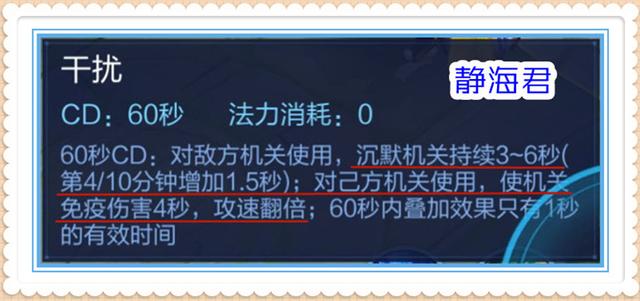 这个效果和召唤师技能干扰一样,两者之间的区别只在于时间以及干扰可以对己方防御塔使用。
