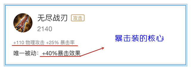 对于所有走暴击流的英雄而言,无尽战刃就是最核心的存在,有了它之后,暴击流才完整。