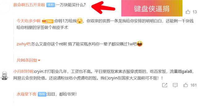 不过要说到相对有经验的,就是英雄联盟主播PDD了,可能也是习惯了这种情况,所以PDD捐款后直接就堵住了键盘侠的嘴,表示自己已经捐款100万,这次应该没有人喷了吧,不过即使这样的的数额,评论区仍旧可以发现不少键盘侠,重复着“才捐了100万”之类的话。
