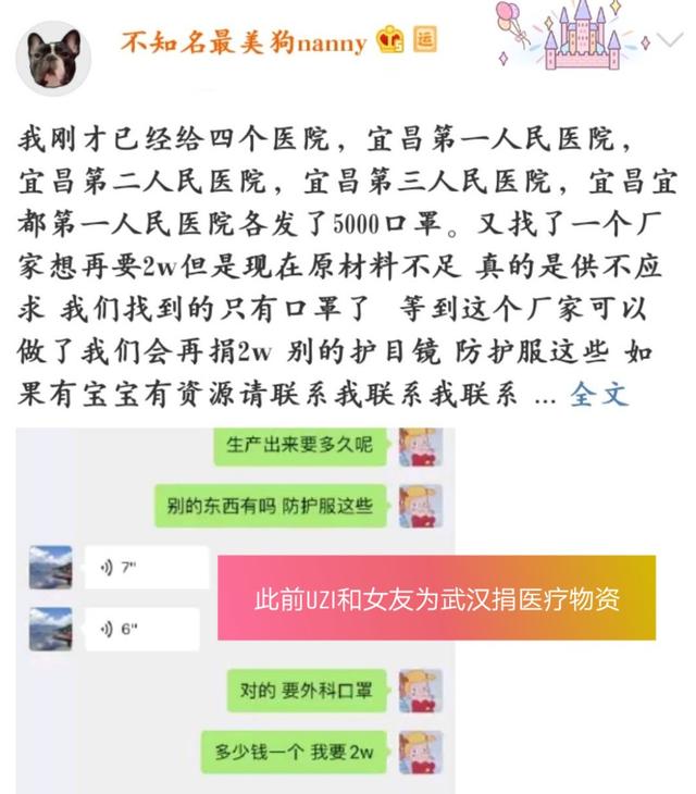 但是我们要知道Uzi一直很热心公益的,之前疫情期间,都和女友一起为武汉捐赠了大家医用设备,而且本想安安静静的进行帮助,却没想到会被网暴。