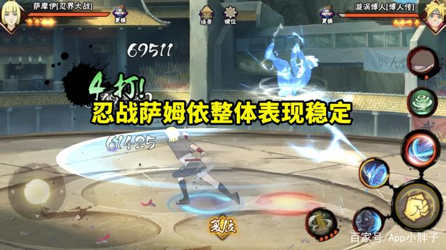 剩下的忍战牙和忍战萨姆依,抛开收集和喜好程度不谈的话,想要追求整体表现的话,忍战萨姆依会更适合大部分玩家。一技能突进攻击,二技能两段效果可以用来远距离起手,并且在第二段命中对方后还能够用普攻追踪对方,奥义可接技能,连招稳定。虽然可能忍战牙的强度上限会更高,但带着赤丸上场,就有点类似傀儡忍者,其中有一部分攻击是需要让赤丸来完成,上手难度也会相应的提升。