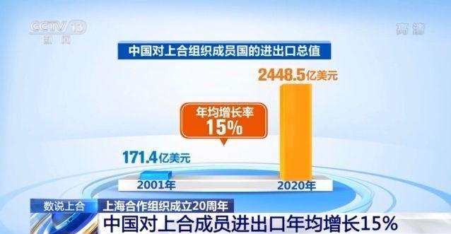 当前,上合组织的经济总量接近20万亿美元,比成立之初增加了13倍多,对外贸易总额达到6.6万亿美元,比20年前增加了100倍。