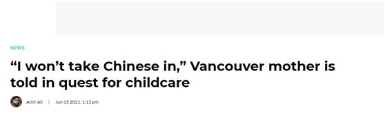 【南方+6月16日讯】据加拿大媒体报道,身处不列颠哥伦比亚省温哥华市的亚裔因受到种族歧视而无法顺利找到托儿所。