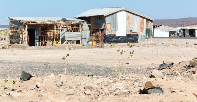 9:在埃塞俄比亚的路上,经常可以看到简易的铁皮房,四周用粗木棍固定,再搭上支架,墙面用铁皮代替,房间的顶部盖一层塑料布,上面铺一层野草,前面再开一个大门就初具规模。这种房子最多只能挡一下阳光,到了下雨的时候会漏雨,不过埃塞俄比亚下雨的天气并不多。